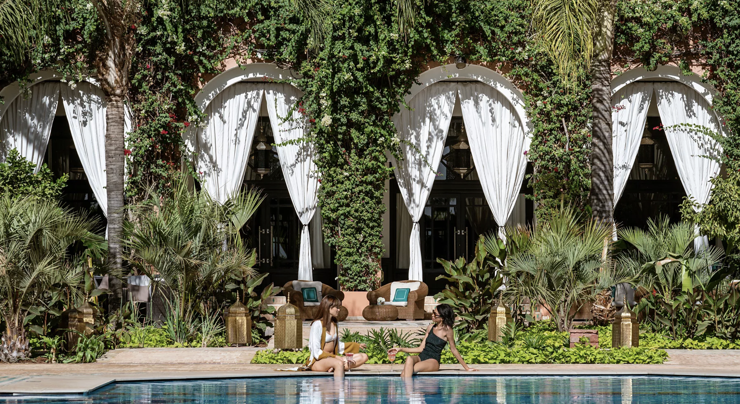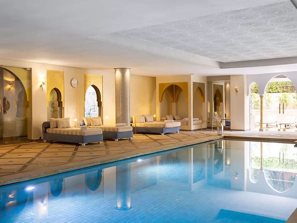 Views of the Atlas Mountains frame lush gardens, pools, and serene courtyards. Just minutes from the lively Medina, the Sofitel is your oasis of calm and comfort — blending Moroccan artistry with contemporary elegance.
